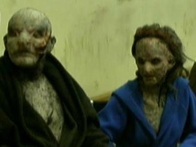 Behind-the-scenes image illustrating the sexual dimorphism of the monsters in The Descent.